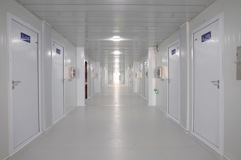 项目概况:乐动(中国)健康驿站(高新)选址位于承德附属医院南院区北侧,总占地面积70亩,规划建设集装箱房1733间(含连廊间),其中,隔离房间 971 间(1003张床位);功能用房269间;其他(廊道、楼梯间)493间。工程布局为四排三组团,地上两层集装箱结构。功能分区有隔离房11栋、办公用房3栋、综合用房1栋。总建筑面积31064㎡,其中隔离用房总建筑面积27586㎡,办公用房2001㎡,综合服务用房1086㎡,其他配套设施(门卫、垃圾暂存间、污水处理、化粪池等设施)300㎡。
